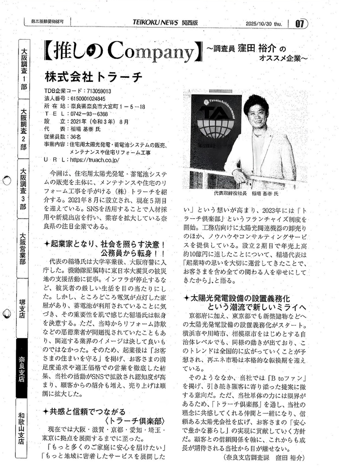 【🏢帝国データニュース 関西版に掲載されました📰✨】