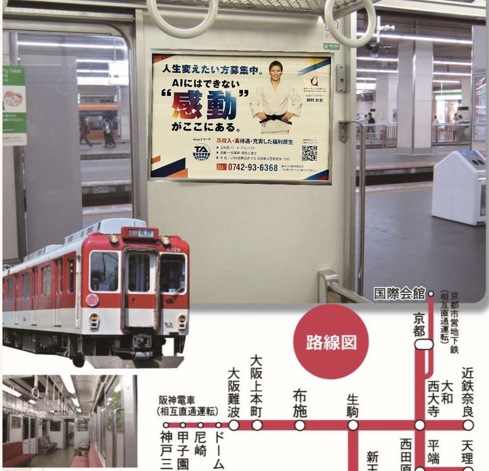特に奈良〜京都〜大阪難波〜神戸三宮など、通勤・通学で多くの方が利用される近鉄電車での掲載ですので、たくさんの方に見ていただけます🚃