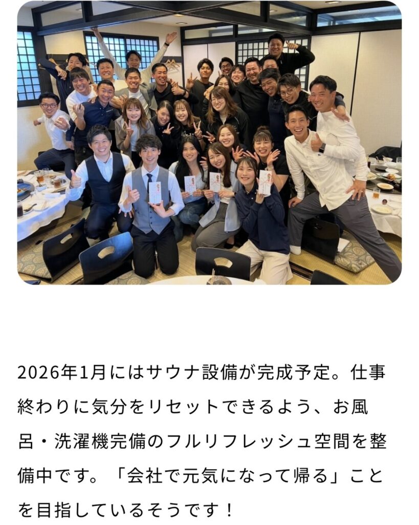 だからこそ私たちは、ただ “おしゃれ” なだけではなく、社員が自然と前向きになれる空気、仲間と会いたくなる距離感、そして 「ここで働けてよかった」 と思える環境づくりを目指しています🤲✨