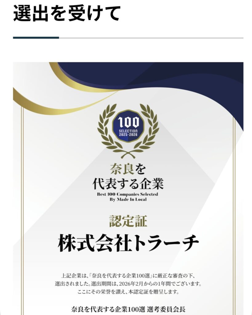 🏆 「奈良を代表する企業100選」 🏆 に選出いただき、選出後の記事を掲載していただきました👏✨