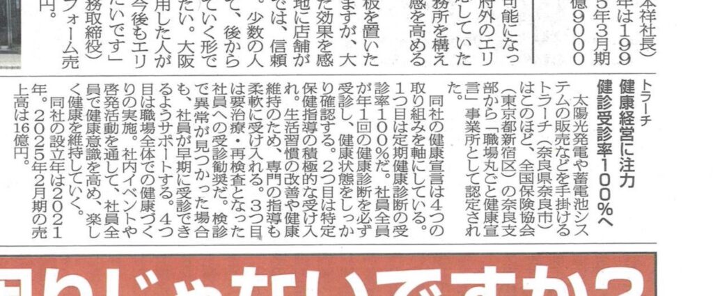 太陽光発電や蓄電池といった再生可能エネルギー事業を通じて、持続可能な社会の実現に貢献する姿勢とともに、社員の健康を大切にする「健康経営」への取り組みを取り上げていただいています☀️🌱